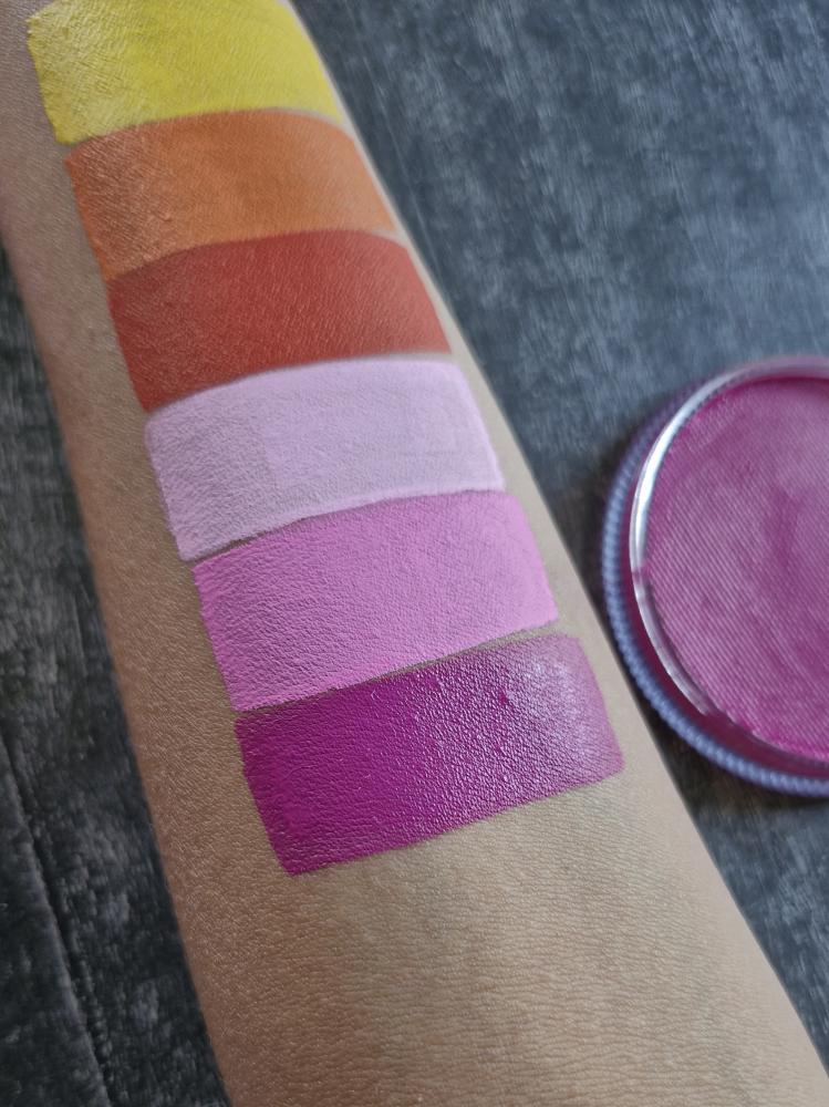 Яркая розовая высокопигментированная краска для лица и тела (аквагрим) фирмы MAG  имеет мягкую текстуру за счет косметического воска в составе, ровно ложится на поверхность кожи, не полосит, не трескается и не осыпается. Цвет свекольный, малиновый-кто как любит. Глубокий насыщенный цвет, который любят девочки всех возрастов! В аквагриме используется в ярких, сочных образах, особенно часто встречается в радужах!
