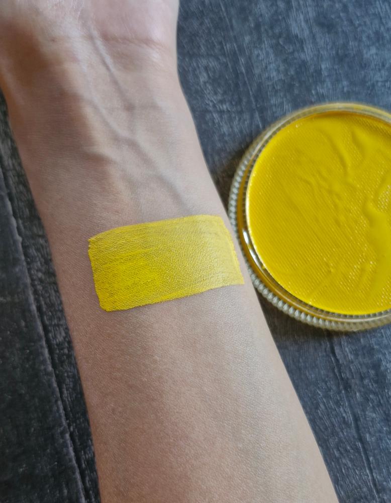 Желтая высокопигментированная краска для лица и тела (аквагрим) фирмы MAG имеет мягкую текстуру за счет косметического воска в составе, ровно ложится на поверхность кожи, не полосит, не трескается и не осыпается. Желтый регулярный цвет считается базовым. Средний желтый оттенок, стандарный и классический.